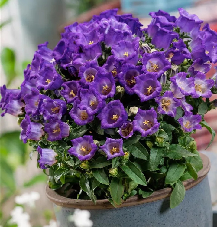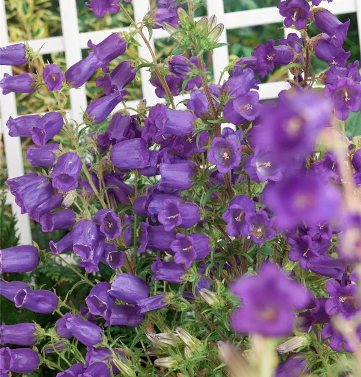 Campanula medium, blau bildet glockenförmige, blaue Blüten ab Mai.