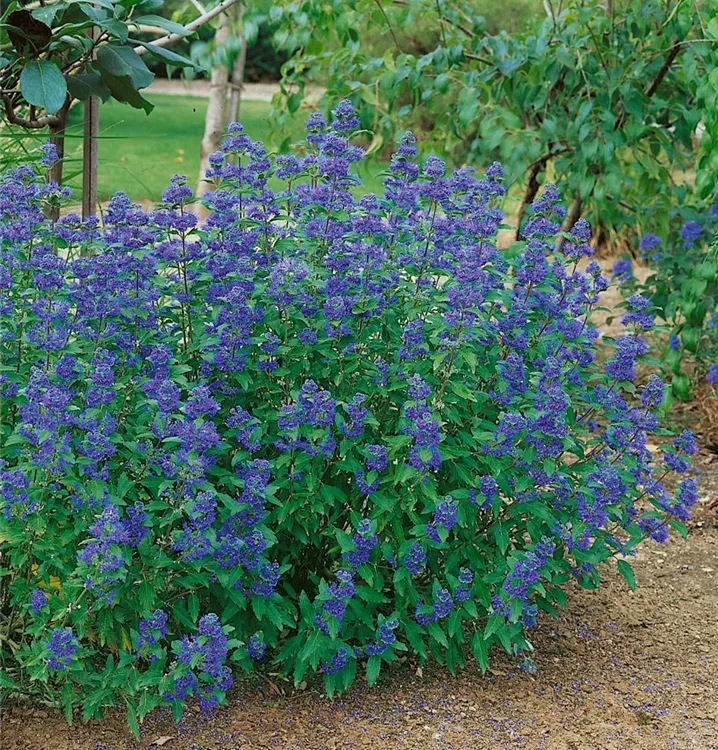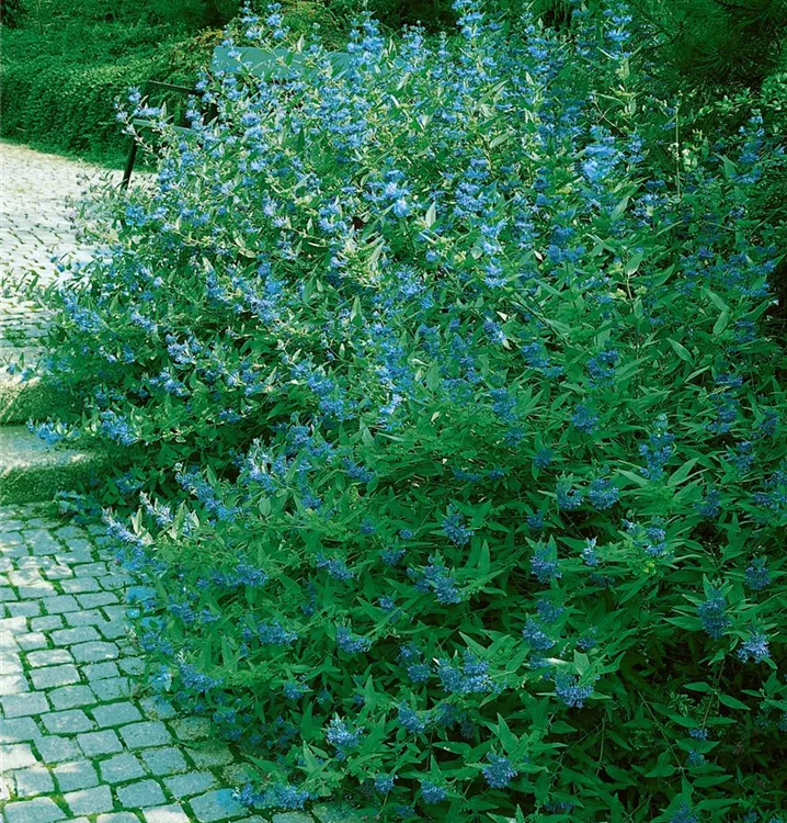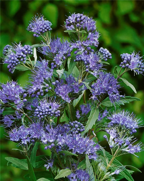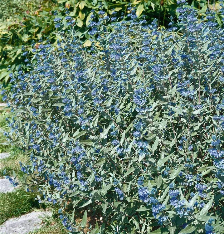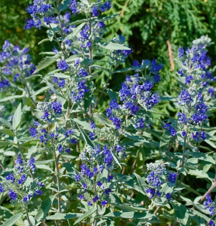 Die Bartblume (Caryopteris clandonensis) ein aufrechter Kleinstrauch, der, je nach Sorte, Blüten in verschiedenen Farben hervorbringt. An einem sonnigen, windgeschützten Standort mit durchlässigem, nährstoffreichem Boden erreicht sie gewöhnlich eine Höhe von ca. 1 m und wird ca. 1 m breit.