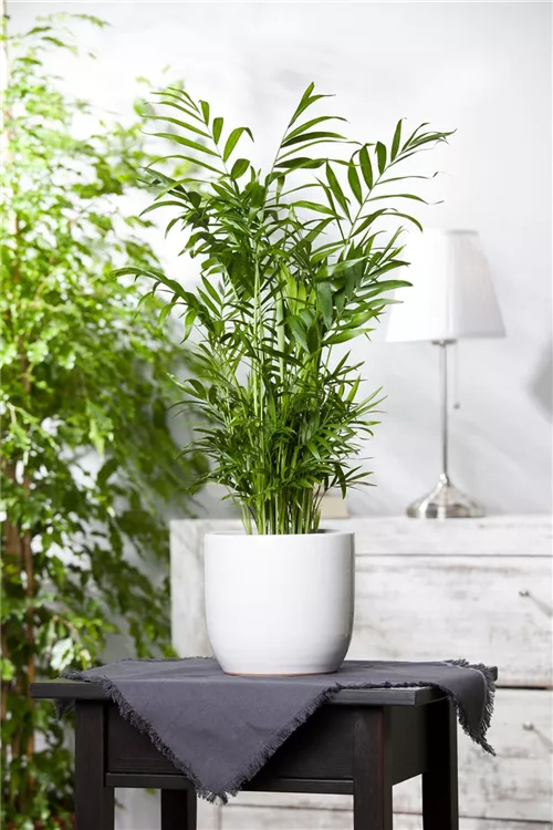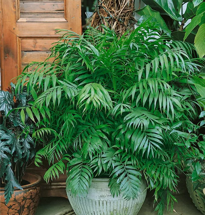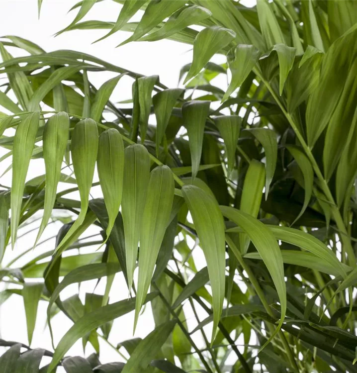 Die Mexikanische Bergpalme (Chamaedorea elegans) trägt mittelgrüne, tief geschlitzte Blätter. Diese aufrechte Pflanze gedeiht am besten an einem halbschattigen bis schattigen Standort.