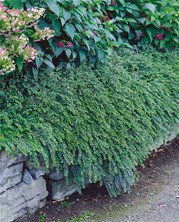 Cotoneaster integrifolius kann eine Höhe von 20 - 30 cm und eine Breite von 40 - 60 cm erreichen.