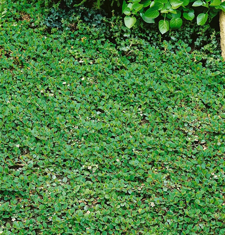 Die immergrünen Blätter der Teppichmispel sind dunkelgrün, rundlich, wechselständig.