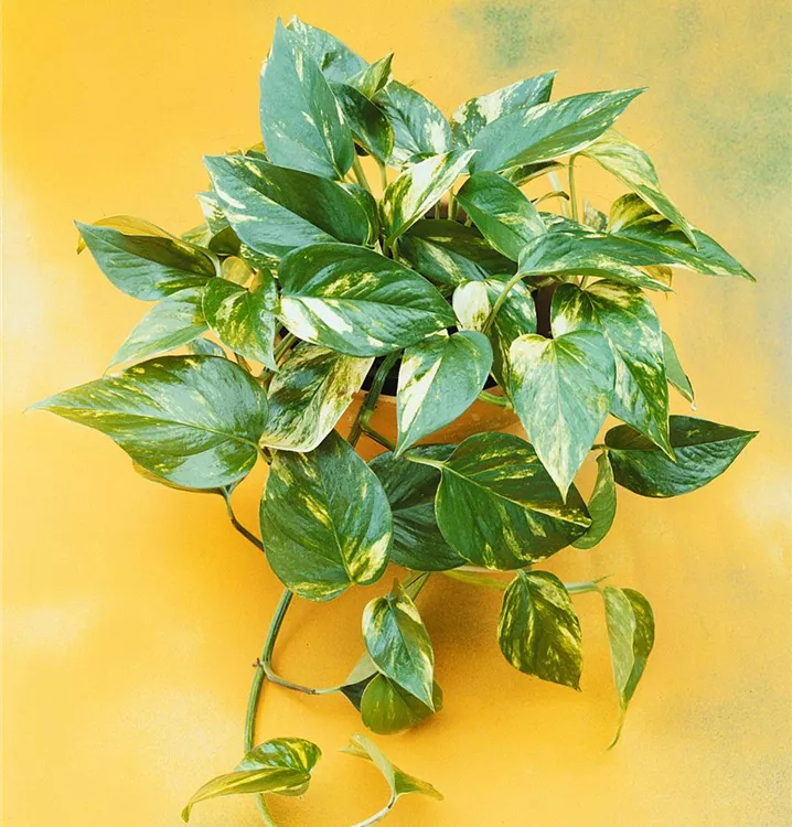 Die Efeutute (Epipremnum) trägt gelbbunte, mittelgrüne, weißbunte Blätter. Diese kletternde Pflanze gedeiht am besten an einem sonnigen bis halbschattigen Standort.