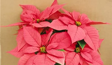 Der Weihnachtsstern (Euphorbia pulcherrima) ist eine rosa blühende Pflanze, die breit lanzettliche, lanzettliche Blätter trägt. Diese buschige Pflanze gedeiht am besten an einem sonnigen Standort.