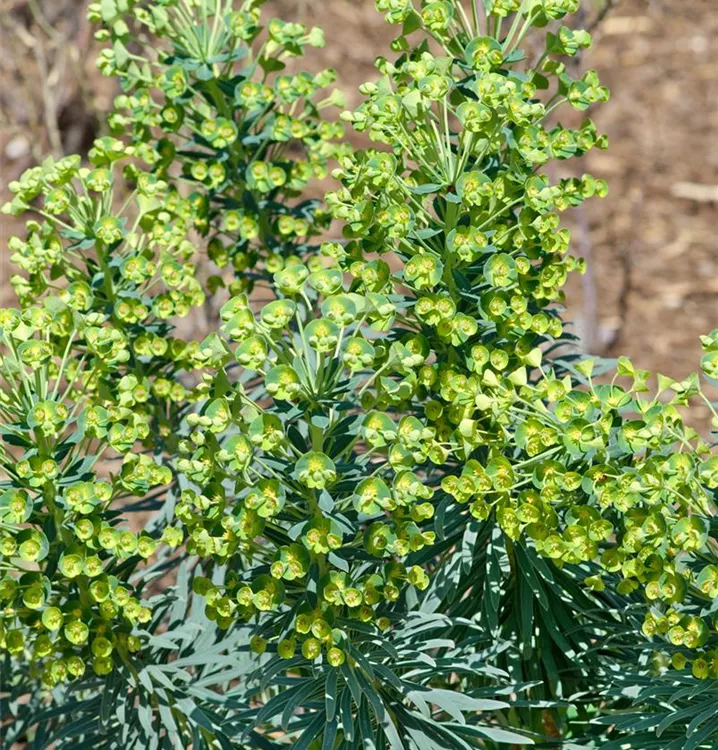 Euphorbia x martinii 'Kolibri' bildet gelbe Blüten ab Mai.