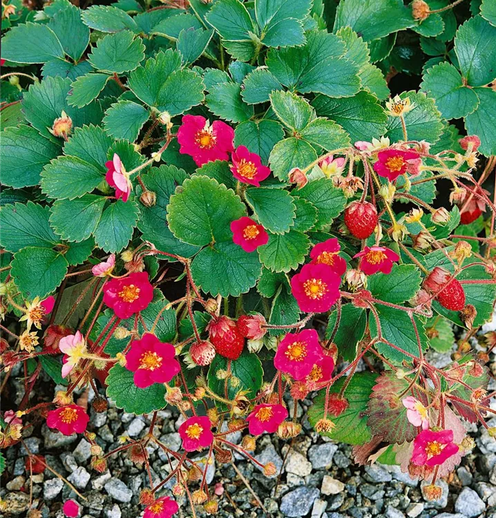 Die Erdbeere (Fragaria) An einem sonnigen Standort mit durchlässigem, humosem Boden erreicht sie gewöhnlich eine Höhe von ca. 20 cm und wird ca. 1 m breit. Die Erdbeere ist gut frostverträglich.