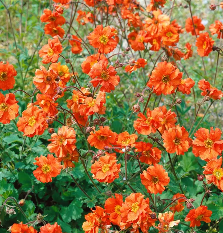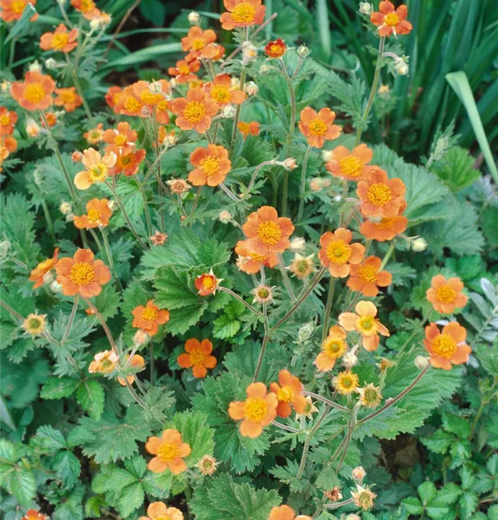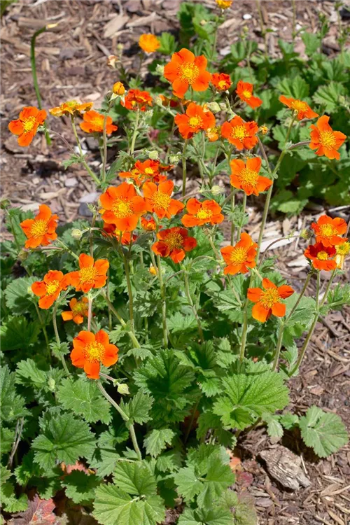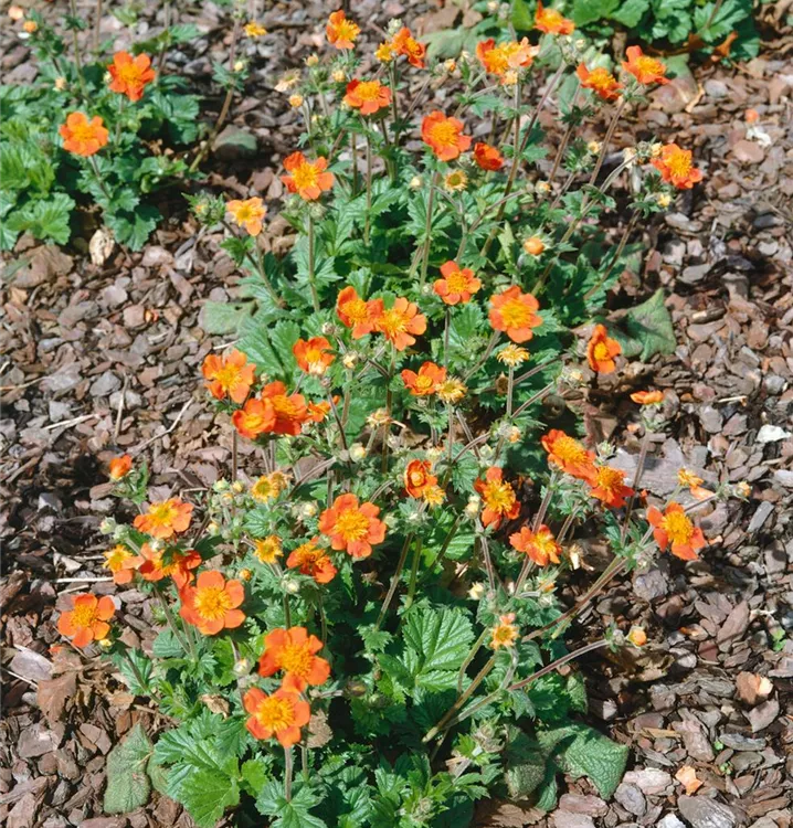 Die Rotblühende Nelkenwurz (Geum coccineum) ist eine aufrechte wintergrüne Staude, die von Mai bis Juli rote Blüten bildet. An einem sonnigen bis halbschattigen Standort mit durchlässigem, nährstoffreichem Boden erreicht sie gewöhnlich eine Höhe von ca. 40 cm und wird ca. 40 cm breit. Die Rotblühende Nelkenwurz ist gut frostverträglich.