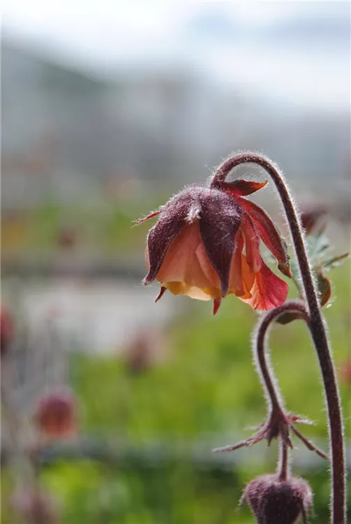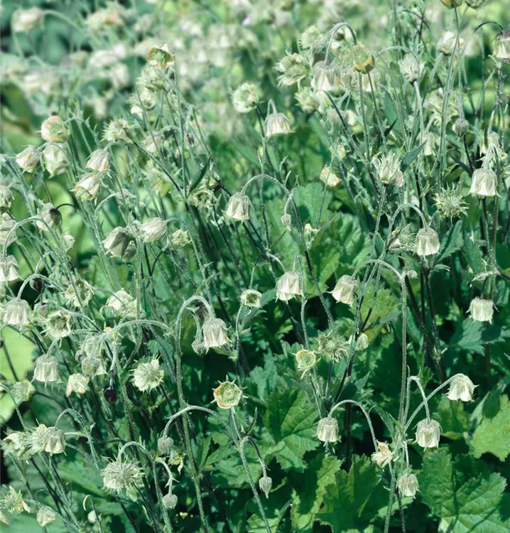 Geum rivale bildet schalenförmige, mehrfarbige Blüten ab April.