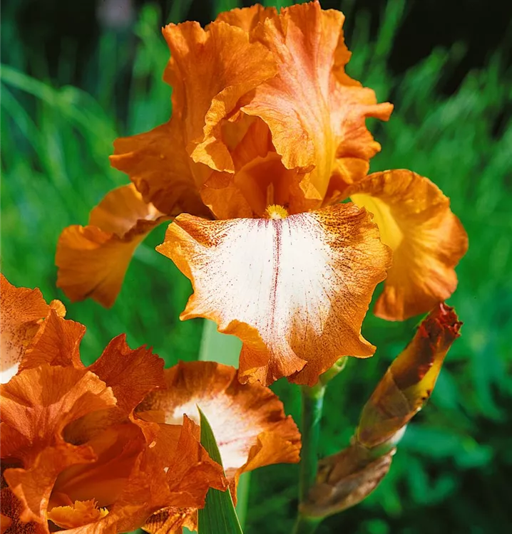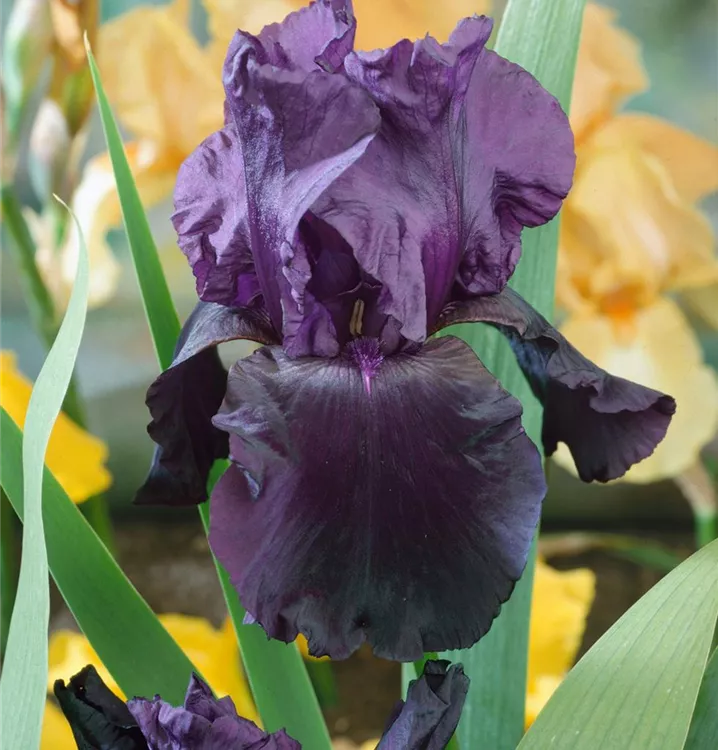Die Hohe Bart-Iris (Iris x germanica) ist eine aufrechte, rhizombildende Staude, die, je nach Sorte, lippenförmige Blüten in verschiedenen Farben bildet. An einem sonnigen Standort mit durchlässigem, kalkhaltigem, nährstoffreichem Boden erreicht sie gewöhnlich eine Höhe von ca. 80 cm und wird ca. 40 cm breit. Die Hohe Bart-Iris ist gut frostverträglich.