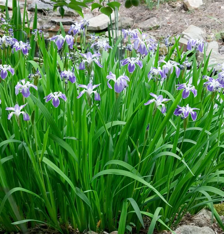 Iris ensata bildet violette Blüten ab Juni.