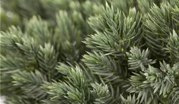 Der Blaue Zwerg-Wacholder 'Blue Star' ist immergrün. Seine Nadeln sind silberblau, stechend, schuppenförmig.