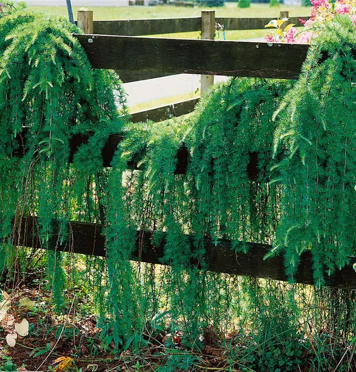 Die Europäische Lärche (Larix decidua) ist ein Großbaum, welcher kegelförmig wächst und gewöhnlich eine Höhe von ca. 35 m und eine Breite von ca. 20 m erreicht. Ihre nadelförmigen Blätter haben eine hellgrüne Färbung. Sie verwandeln sich im Herbst in ein leuchtendes Goldgelb. Dekorative braune Zapfen zieren Larix decidua ab September. Dieses Gehölz ist gut frostverträglich. Sie bevorzugt durchlässigen, nährstoffreichen Boden in sonniger Lage.