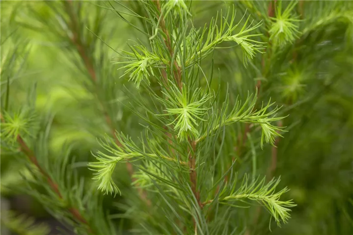 Die Europäische Lärche ist sommergrün. Ihre Nadeln sindhellgrün. Europäische Lärche zeigt sich leuchtend goldgelb im Herbst.