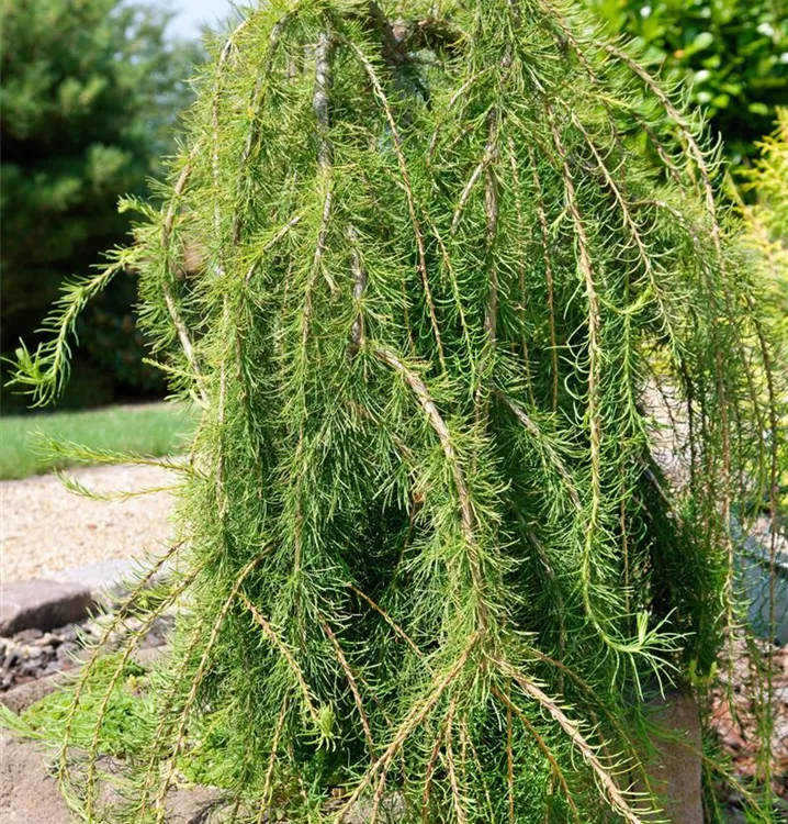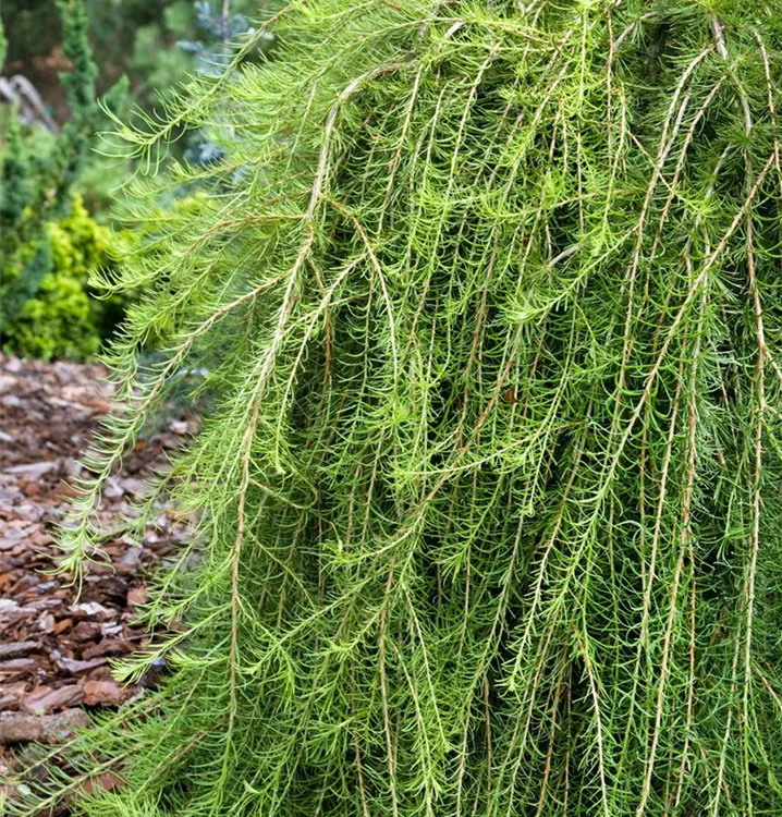 Europäische Lärche 'Puli' ist kegelförmig und hängend im Aufbau.