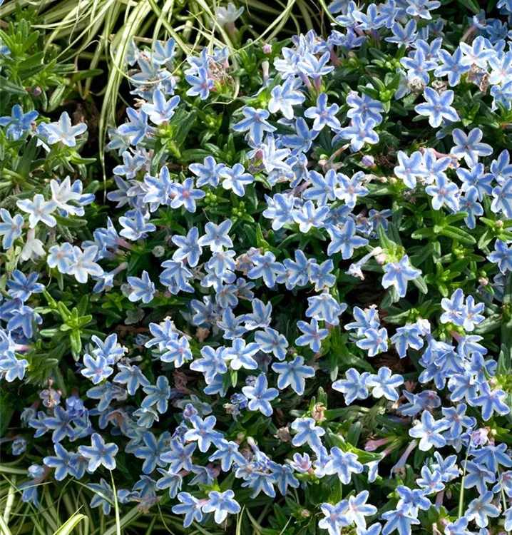 Die Garten-Scheinsteinsame (Lithodora diffusa) ist eine mattenbildende wintergrüne Staude, die von Mai bis Juli blaue Blüten bildet. An einem sonnigen, windgeschützten Standort mit durchlässigem Boden erreicht sie gewöhnlich eine Höhe von ca. 20 cm und wird ca. 30 cm breit. Die Garten-Scheinsteinsame ist gut frostverträglich.