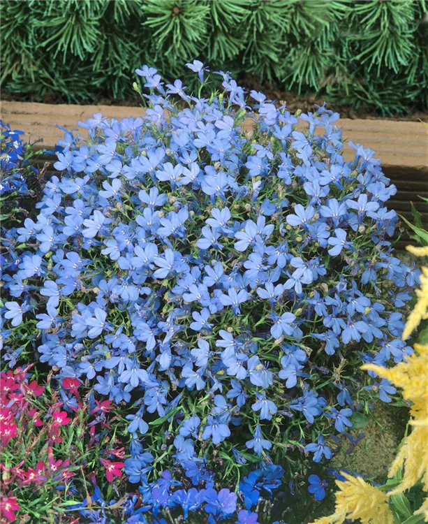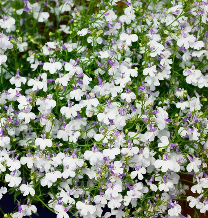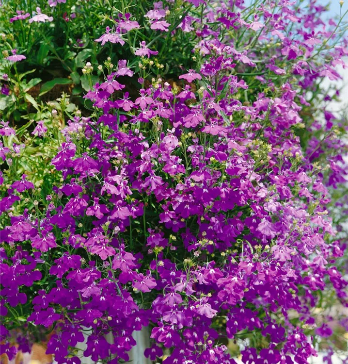 Die Blaue Lobelie (Lobelia erinus) ist eine beliebte Pflanze für den Balkon. Die unzähligen Blüten erscheinen, je nach Sorte, in verschiedenen Farben die ganze Saison hindurch. Ein sonniger bis halbschattiger Standort und ein durchlässiges Substrat werden bevorzugt.