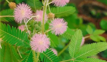 Die Mimose (Mimosa pudica) ist eine sehr beliebte Kübelpflanze. Ihre dekorativen Blüten erscheinen von April bis Oktober. Verwenden Sie bevorzugt die spezielle Kübelpflanzenerde, denn sie verdichtet sich über längere Zeit nicht.