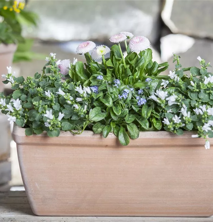 Das Wald-Vergissmeinnicht (Myosotis sylvatica) ist eine beliebte Pflanze für den Balkon. Die unzähligen Blüten erscheinen, je nach Sorte, in verschiedenen Farben die ganze Saison hindurch. Ein sonniger Standort und ein durchlässiges Substrat werden bevorzugt.