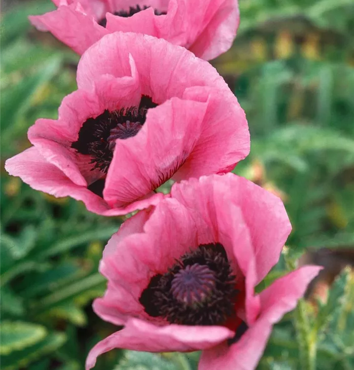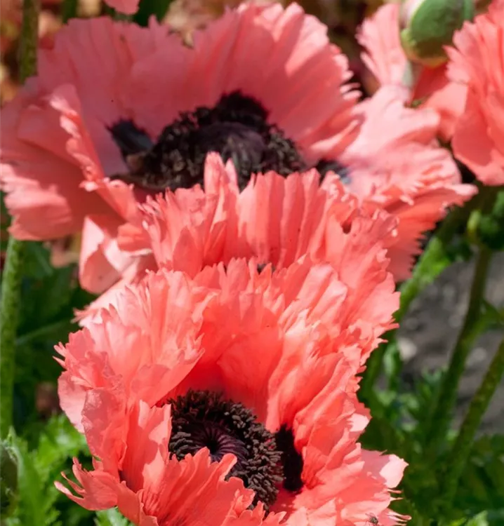 Der Orientalische Mohn (Papaver orientale) ist eine aufrechte Staude, die von Juni bis Juli rosarote, schalenförmige Blüten bildet. An einem sonnigen Standort mit durchlässigem Boden erreicht er gewöhnlich eine Höhe von ca. 80 cm und wird ca. 50 cm breit. Der Orientalische Mohn ist gut frostverträglich.
