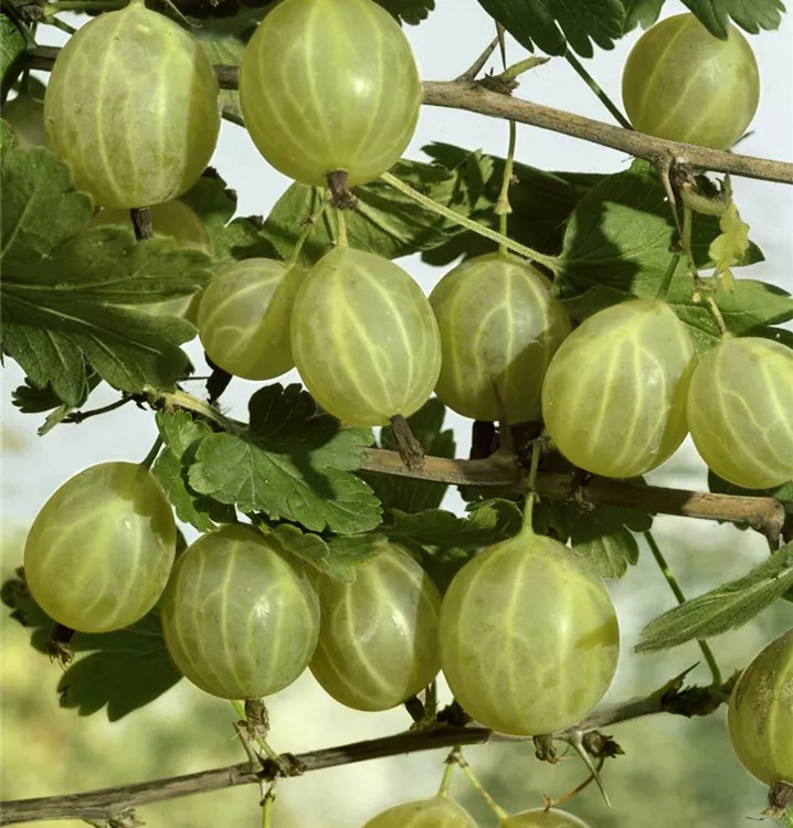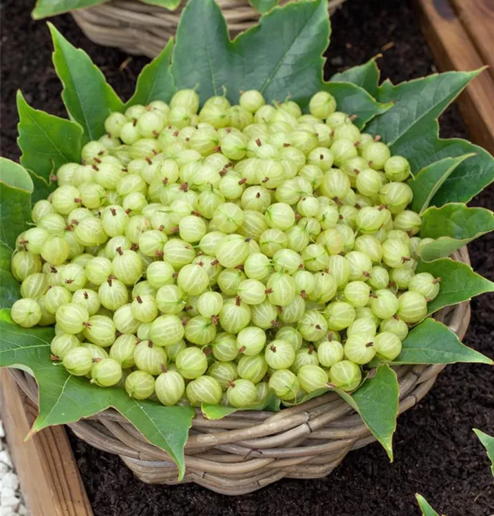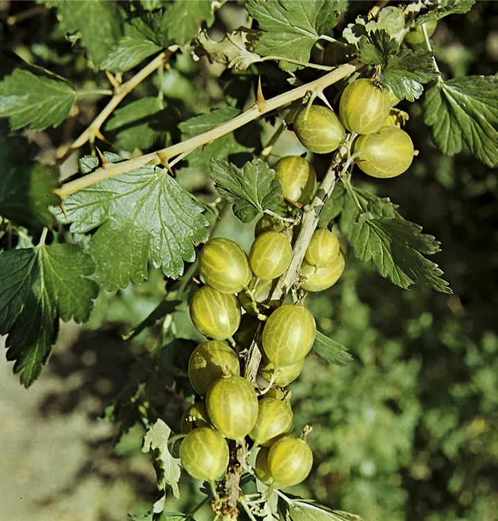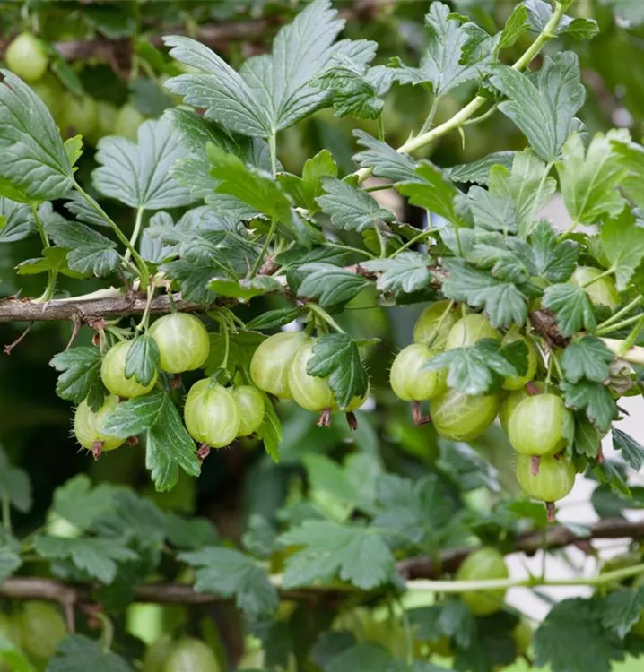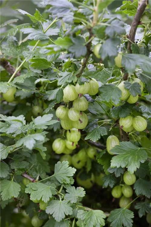 Die Stachelbeere, grün (Ribes uva-crispa) bildet grüne Beeren. Diese sind süß im Geschmack. Für eine ertragreiche Ernte ab Juli schaffen durchlässiger, lockerer, nährstoffreicher Boden und ein sonniger bis halbschattiger Standort optimale Bedingungen.