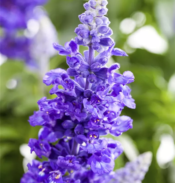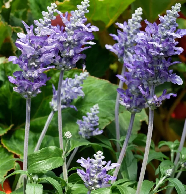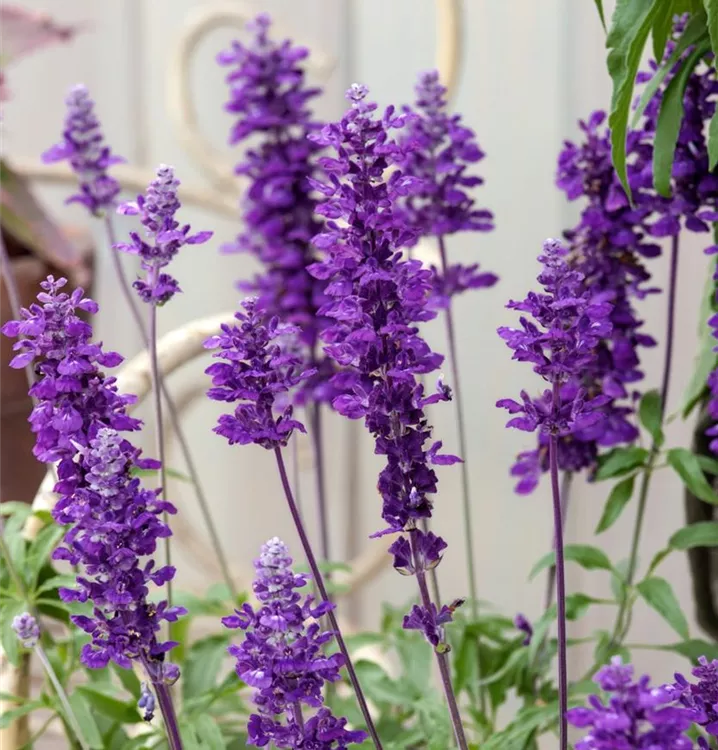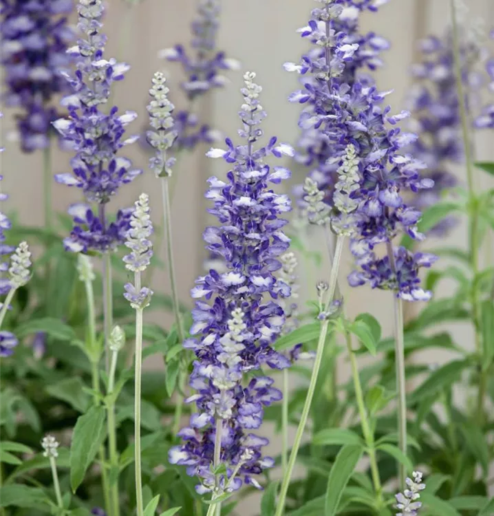 Der Mehlige Salbei (Salvia farinacea) ist eine beliebte Pflanze für den Balkon. Die unzähligen Blüten erscheinen, je nach Sorte, in verschiedenen Farben die ganze Saison hindurch. Ein sonniger Standort und ein durchlässiges Substrat werden bevorzugt.