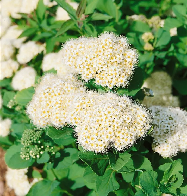 Die sommergrünen Blätter des Spierstrauchs sind mittelgrün, wechselständig.