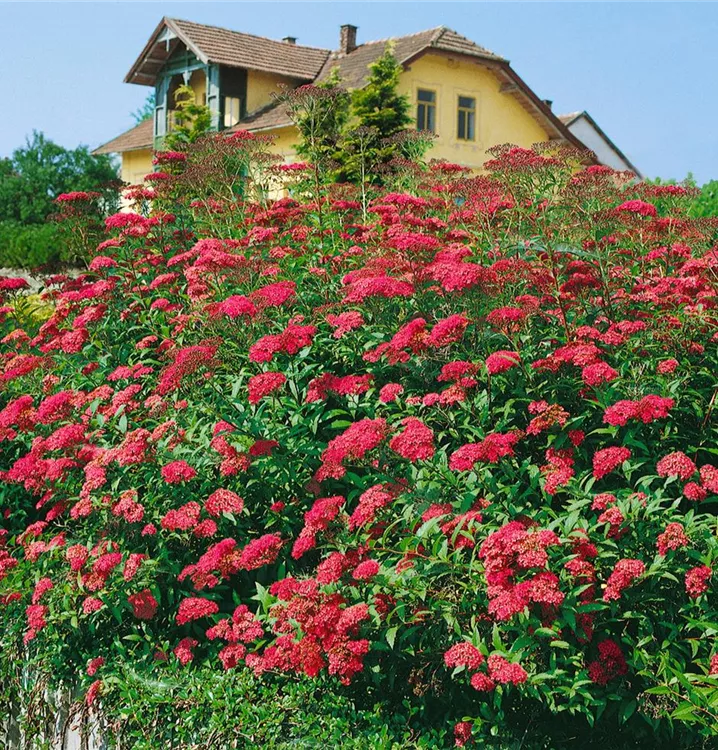 Der Spierstrauch (Spiraea) eine Gartenpflanze, die, je nach Sorte, Blüten in verschiedenen Farben hervorbringt.