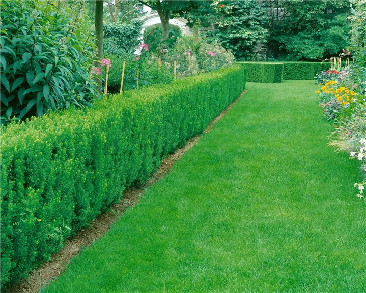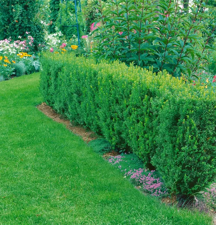 Die Spalier-Eibe 'Straight Hedge' ist immergrün. Ihre Nadeln sind dunkelgrün.