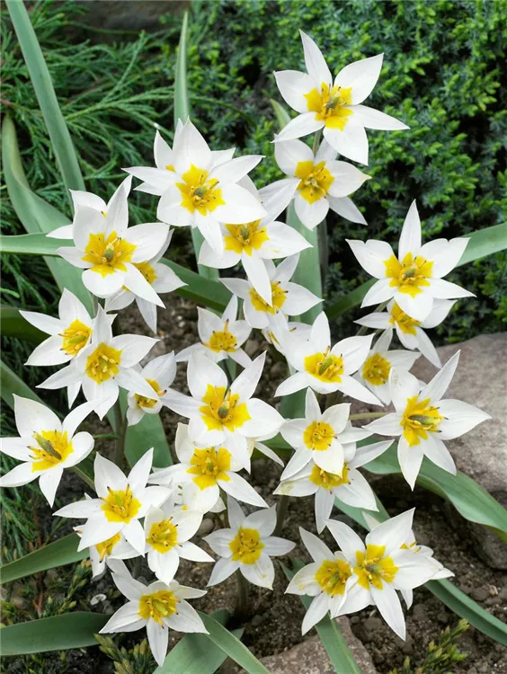 Die Turkestan-Tulpe (Tulipa turkestanica) ist eine pflegeleichte Pflanze, die weiß blüht. Die Blüten verströmen einen angenehmen Duft und erscheinen von März bis April. Bevorzugt wird ein sonniger Standort.