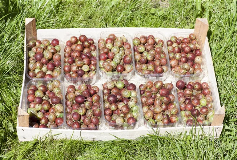 Die Stachelbeeren gehören zu den Beerenarten, die Selbstbefruchter sind. Wenn allerdings eine reiche Ernte gewünscht wird, sind sowohl ausreichend Bienen als auch weitere Stachelbeersorten in der Nähe wichtig. Stachelbeeren schmecken frisch von Strauch, aber sie können auch vielseitig weiterverarbeitet werden. Es gibt sowohl Backrezepte als auch Desserts, die mit Stachelbeeren zubereitet werden. Andere Verwendungsmöglichkeiten sind das Einkochen von Kompott oder die Herstellung von leckeren Marmeladen. Der Erntezeitpunkt hängt davon ab, wie die Stachelbeere weiterverarbeitet werden soll. Als Kuchenbelag oder zum Einkochen eignen sich besonders die grünen Beeren, die noch nicht ganz fertig gewachsen sind und schon Ende Mai bis Anfang Juni gepflückt werden. Für die Zubereitung von Konfitüren und Gelees wartet man, bis die Früchte ihre endgültige Größe haben.