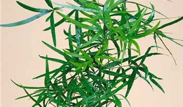 Die Blätter des Zier-Spargels sind mittelgrün, lanzettlich.