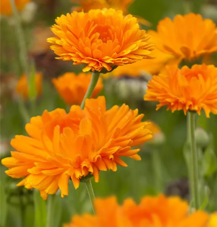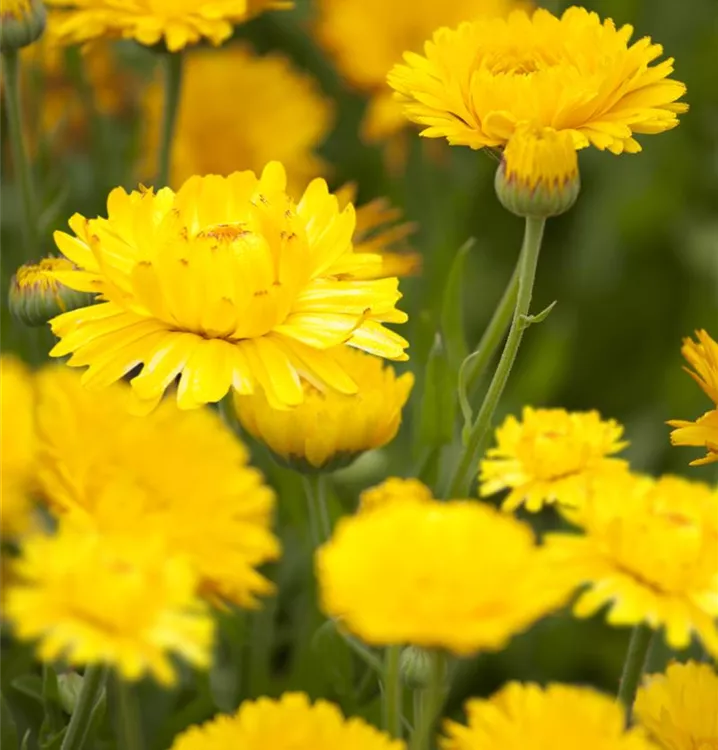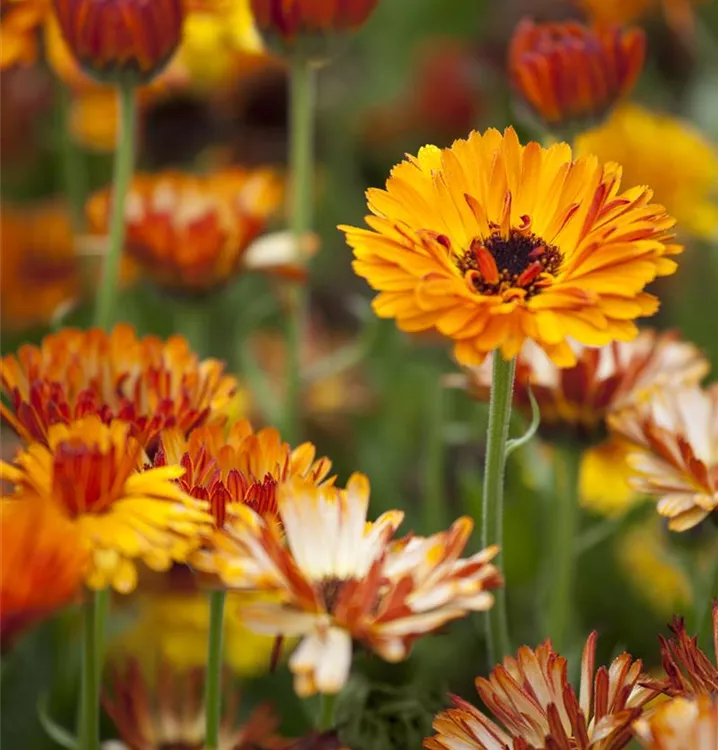 Die Ringelblume (Calendula officinalis) ist eine beliebte Pflanze für den Balkon. Die unzähligen, angenehm duftenden Blüten erscheinen, je nach Sorte, in verschiedenen Farben die ganze Saison hindurch. Ein sonniger Standort und ein durchlässiges Substrat werden bevorzugt.