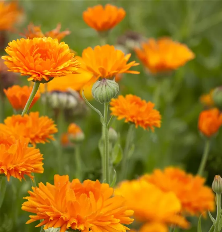 Zum Verzehr geeignet. Je nach Sorte, bildet Calendula officinalis körbchenartige Blüten in verschiedenen Farben. Diese sind angenehm duftend.