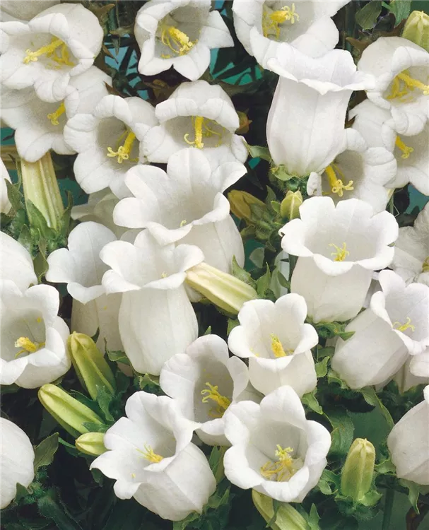 Die Marien-Glockenblume 'Poem' (Campanula medium) ist eine aufrechte wintergrüne Staude, die, je nach Sorte, glockenförmige Blüten in verschiedenen Farben bildet. An einem sonnigen bis halbschattigen Standort mit durchlässigem, lockerem, nährstoffreichem Boden erreicht sie gewöhnlich eine Höhe von ca. 1 m und wird ca. 60 cm breit. Die Marien-Glockenblume 'Poem' ist gut frostverträglich.