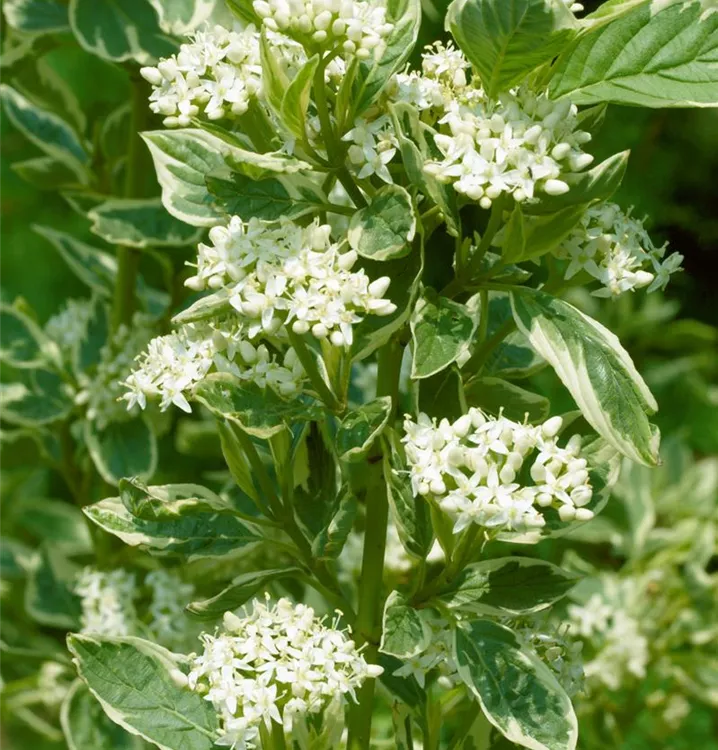 Der Hartriegel (Cornus sericea) eine strauchartige Gartenpflanze, die, je nach Sorte, Blüten in verschiedenen Farben hervorbringt. An einem sonnigen bis halbschattigen Standort mit durchlässigem, nährstoffreichem Boden erreicht er gewöhnlich eine Höhe von ca. 2 m und wird ca. 2 m breit.