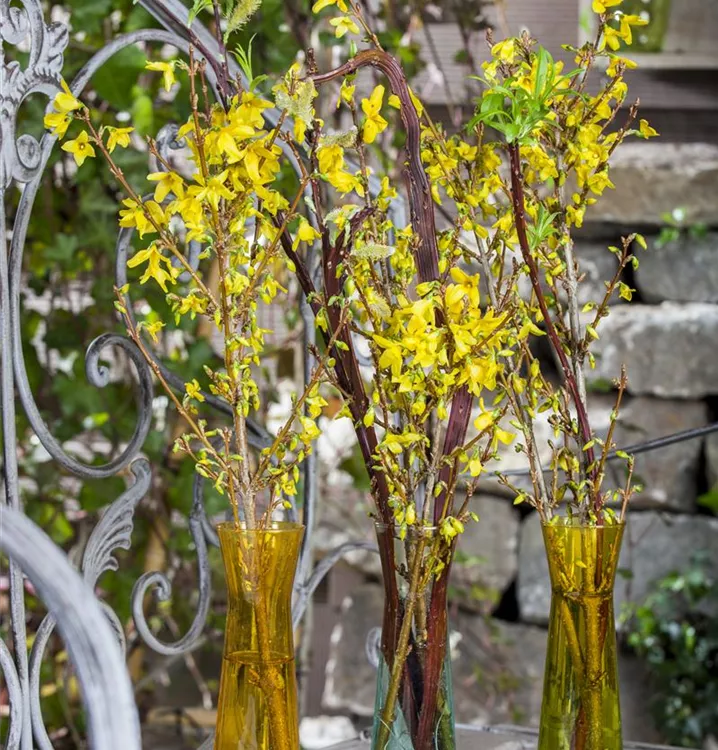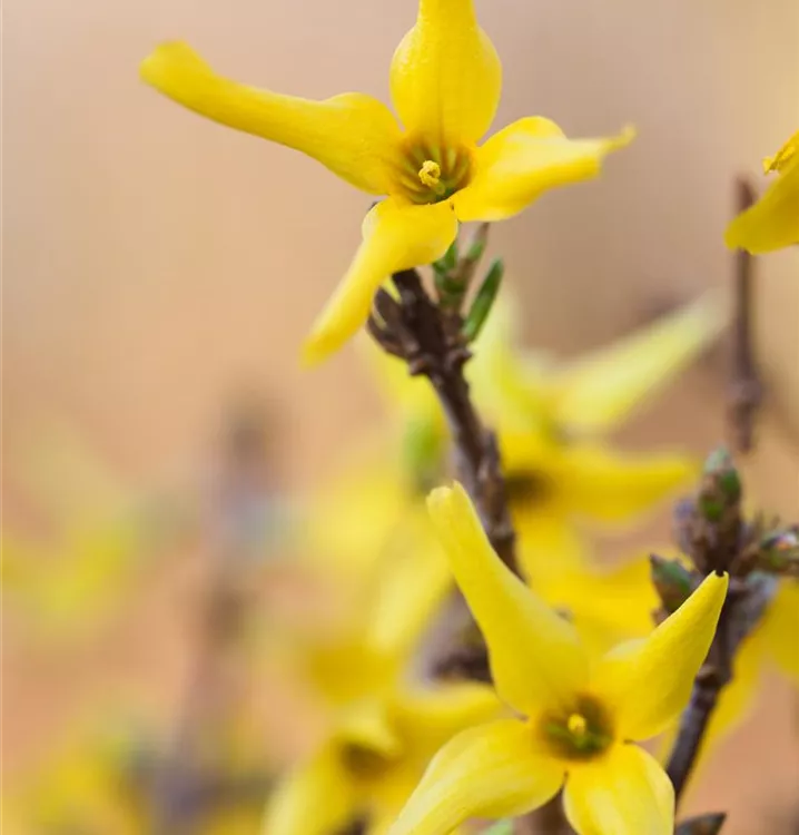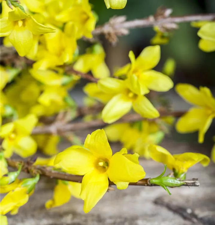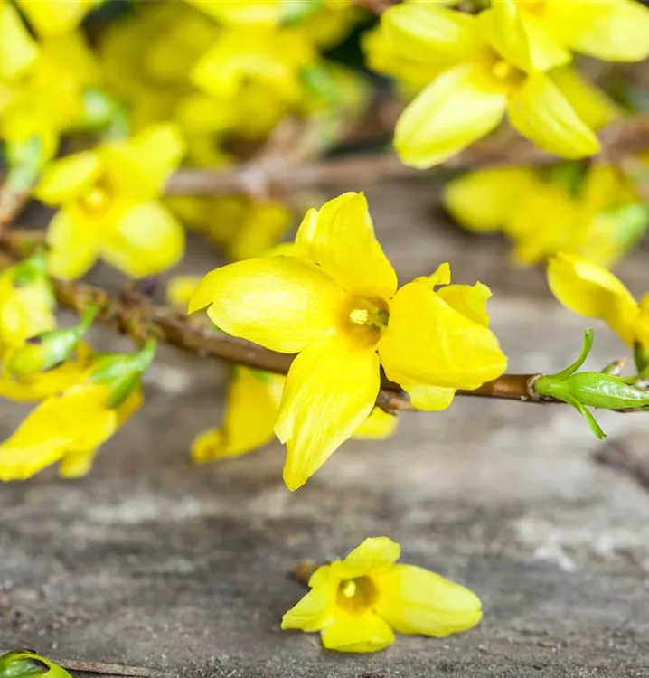 Die gelben Blüten der Forsythie erscheinen in Rispen von März bis Mai.
