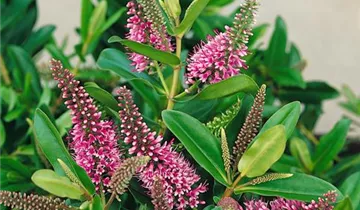 Je nach Sorte, bildet Hebe x andersonii Blüten in verschiedenen Farben.