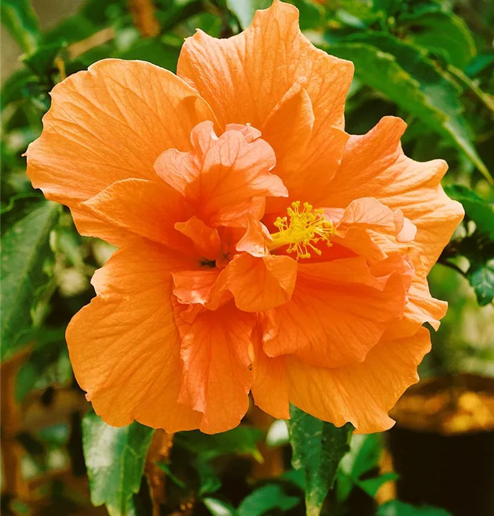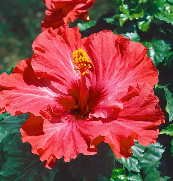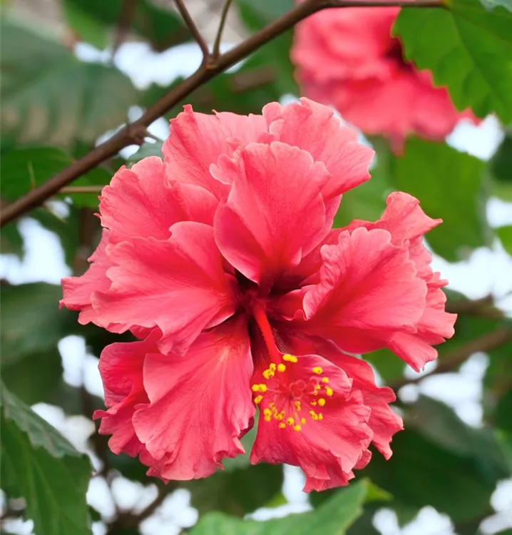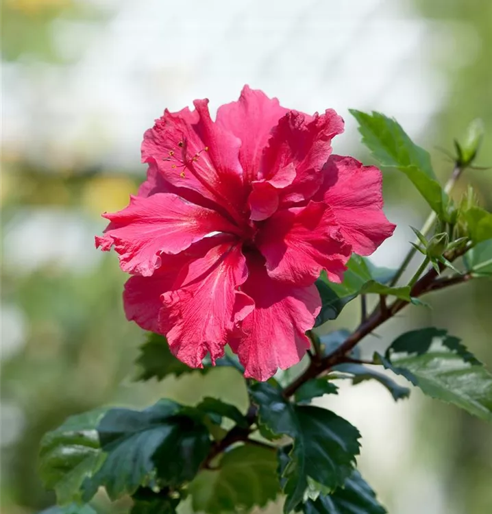 Der Chinesische Roseneibisch (Hibiscus rosa-sinensis) ist eine sehr beliebte Kübelpflanze. Seine dekorativen Blüten sind schalenförmig und erscheinen von Juni bis Oktober. Verwenden Sie bevorzugt die spezielle Kübelpflanzenerde, denn sie verdichtet sich über längere Zeit nicht.