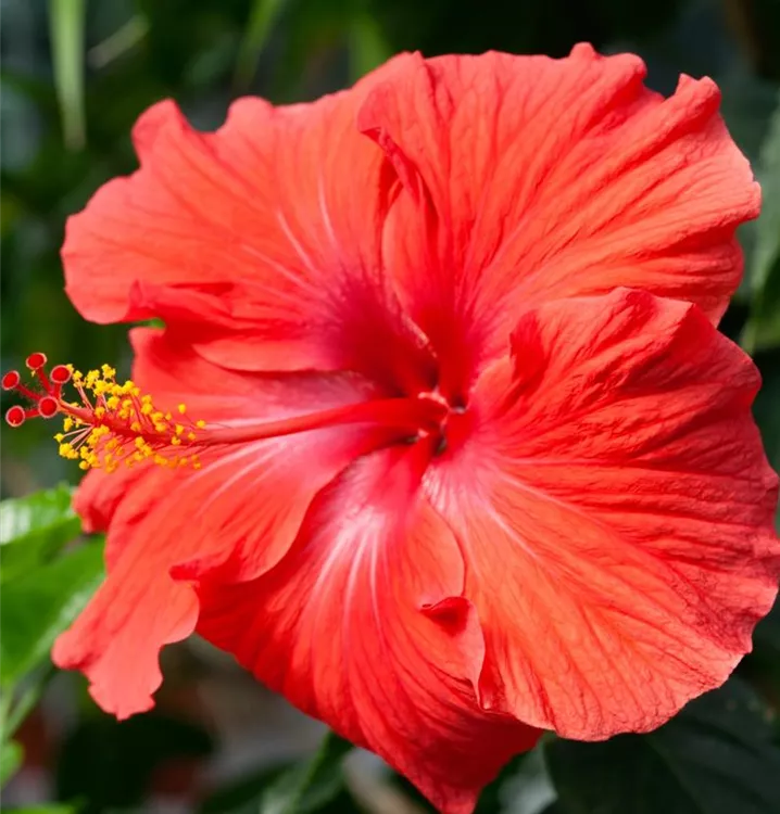 Je nach Sorte, bildet Hibiscus rosa-sinensis schalenförmige Blüten in verschiedenen Farben. Diese werden etwa 6 - 10 cm groß.