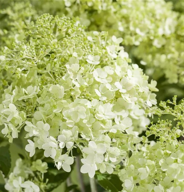 Die weißen Blüten der Rispenhortensie erscheinen in Rispen von Juli bis September. Diese sind angenehm duftend.