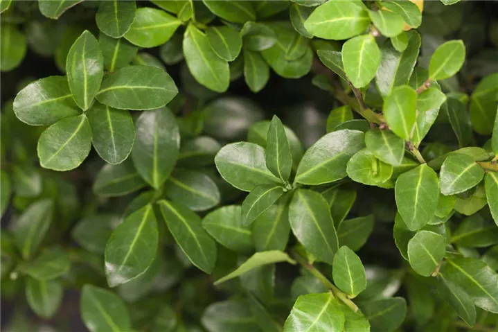 Die immergrünen Blätter der Japan-Stechpalme sind mittelgrün, rundlich, wechselständig. Diese sind etwa 2 - 3 cm groß.