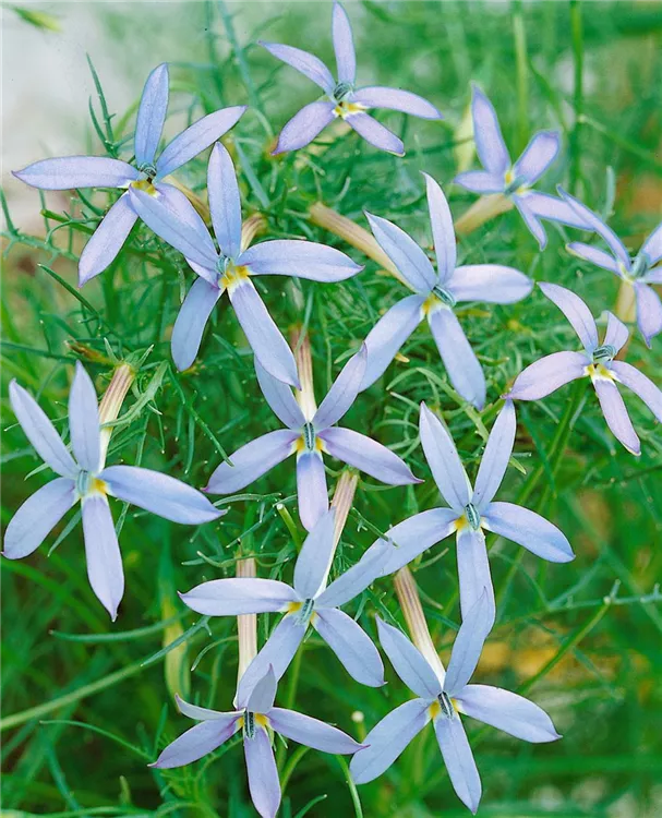 Die Schein-Lobelie (Isotoma axillaris) ist eine buschige, polsterbildende Staude, die von Mai bis Oktober blaue, sternförmige Blüten bildet. An einem sonnigen Standort mit durchlässigem, nährstoffreichem Boden erreicht sie gewöhnlich eine Höhe von ca. 30 cm und wird ca. 40 cm breit.