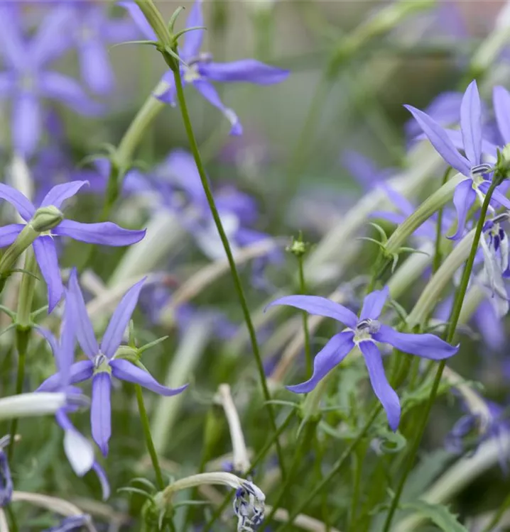 Isotoma axillaris bildet sternförmige, blaue Blüten ab Mai.