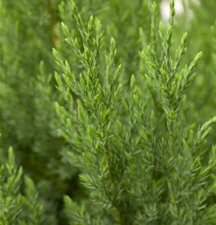 Der Blaue Kegel-Mooswacholder 'Stricta' ist immergrün. Seine Nadeln sind blau-grün.