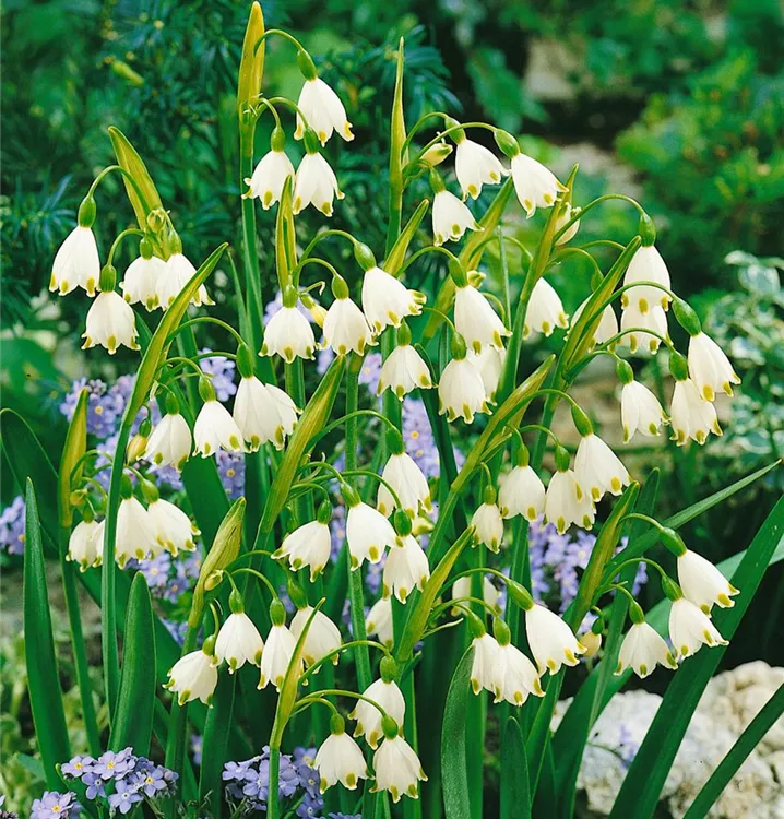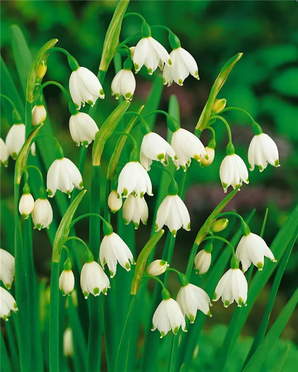 Die Sommer-Knotenblume (Leucojum aestivum) bringt ansehnliche, weiße, angenehm duftende Blüten von April bis Juni hervor. Bevorzugt wird ein durchlässiger, nährstoffreicher Boden in sonniger bis halbschattiger Lage. Die aufrechte Staude erreicht gewöhnlich eine Höhe von 30 - 40 cm und wird bis zu 20 cm breit.