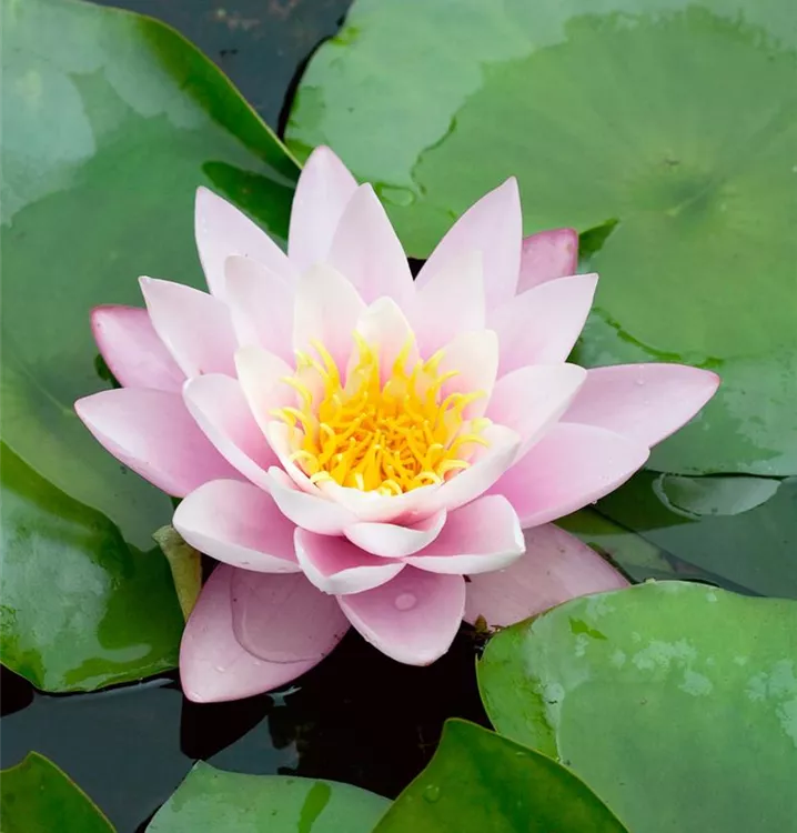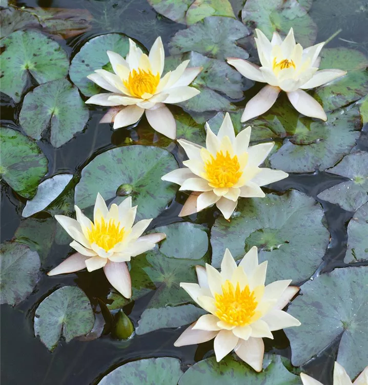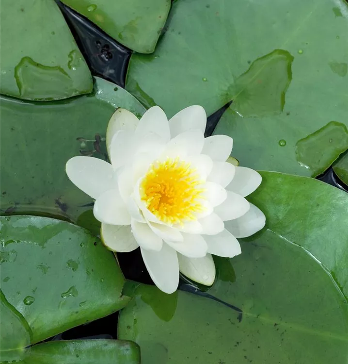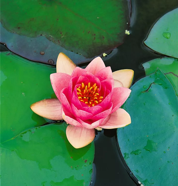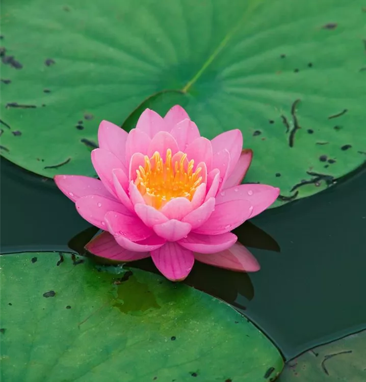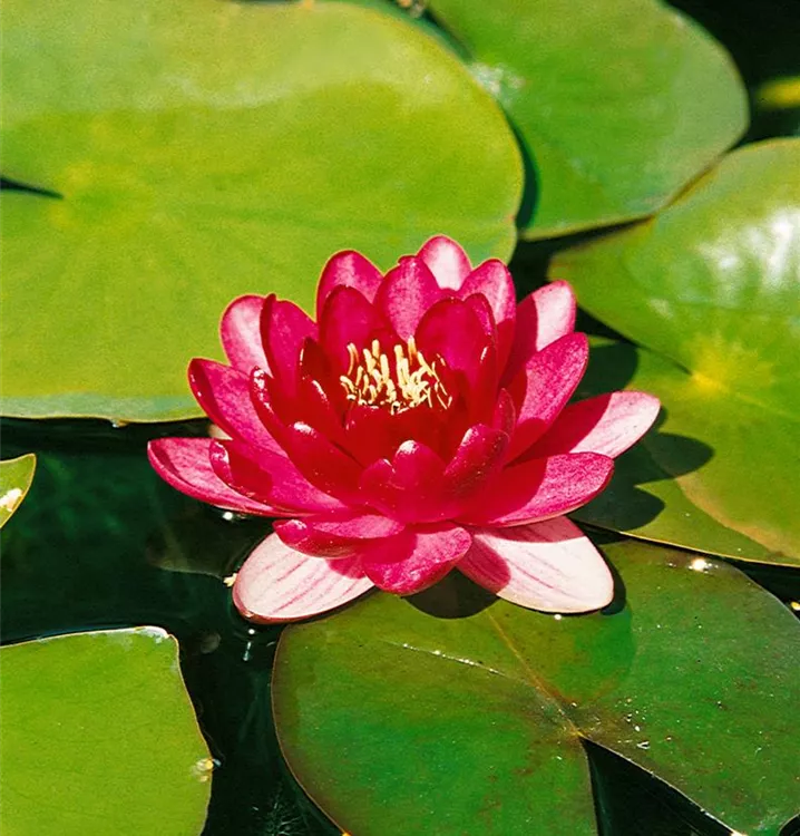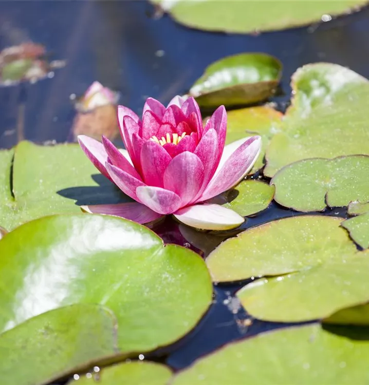Die Seerose (Nymphaea) ist mit ihren dunkelgrünen Blättern eine ausgesprochen dekorative Wasserpflanze, die für solche Einsatzbereiche wie Teich besonders gut geeignet ist. Die Blüten erscheinen, je nach Sorte, in vielen Farben von Juni bis September. Sie bevorzugt humosen, nährstoffreichen Boden in sonniger Lage. Die Seerose ist gut frostverträglich. Die flache Staude erreicht gewöhnlich eine Höhe von ca. 10 cm.