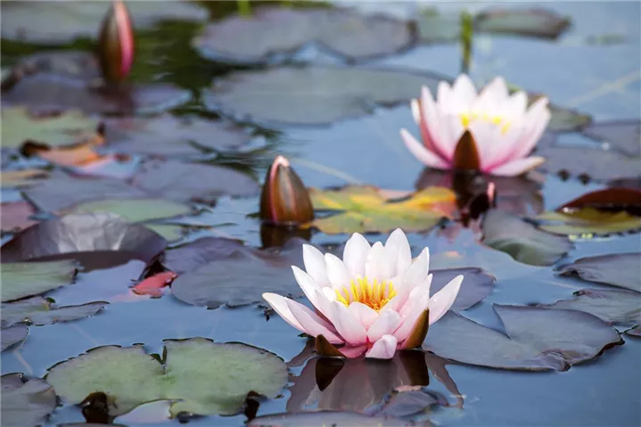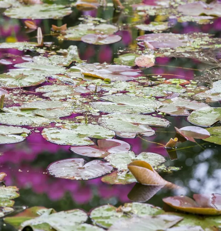 Seerosen lieben ruhige Gewässer, daher sollte in einem Seerosenteich auf einen Springbrunnen und andere "Wellenerzeuger" verzichtet werden.