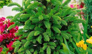 Die Rotfichte (Picea abies) ist ein Großbaum, welcher kegelförmig wächst und gewöhnlich eine Höhe von ca. 50 m und eine Breite von ca. 8 m erreicht. Ihre nadelförmigen Blätter haben eine dunkelgrüne Färbung. Dekorative braune Zapfen zieren Picea abies ab September. Dieses Gehölz ist gut frostverträglich. Sie bevorzugt sandigen, lehmigen Boden in sonniger bis halbschattiger Lage.