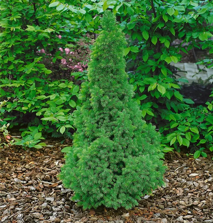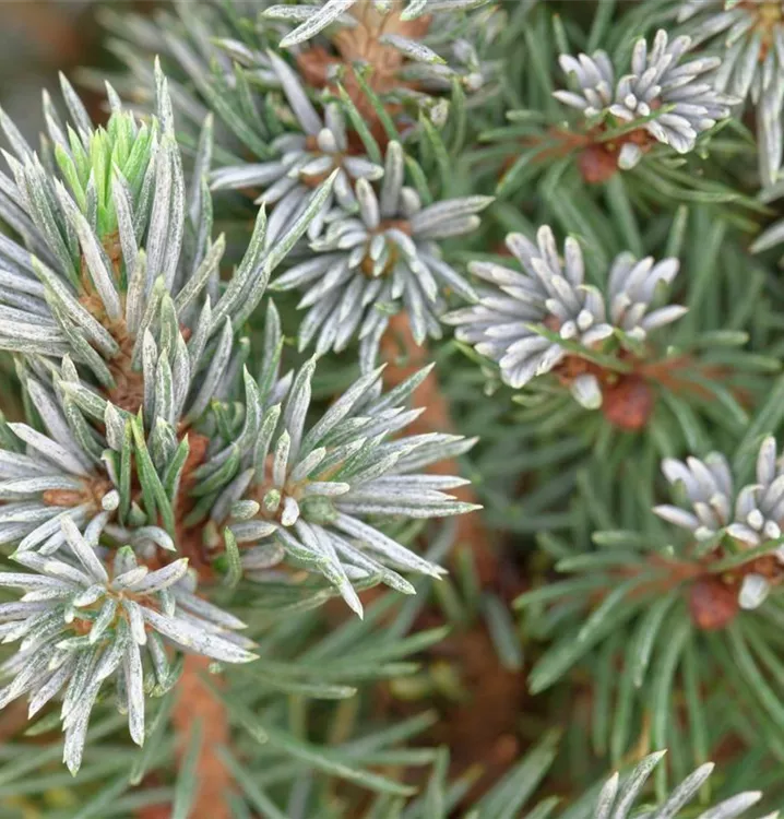 Die Zwerg-Zuckerhut-Fichte 'Sander´s Blue' ist immergrün. Ihre Nadeln sind blau-grau, weich.