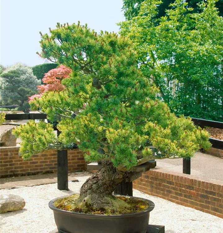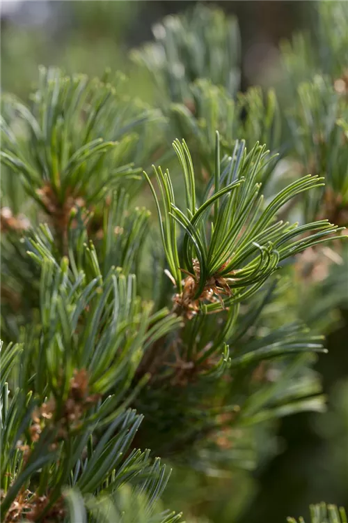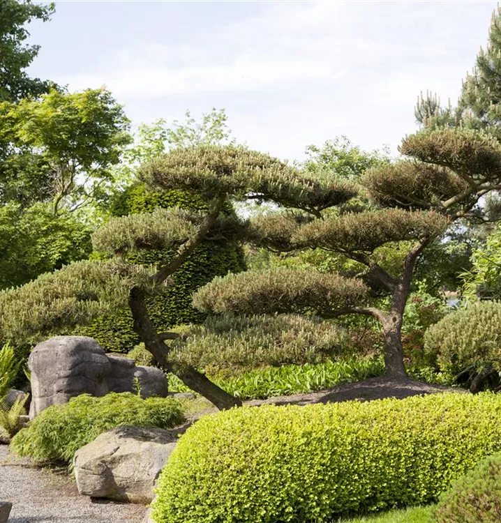 Die Mädchenkiefer (Pinus parviflora) ist ein Gehölz, welches aufrecht, ausladend wächst und gewöhnlich eine Höhe von ca. 8 m und eine Breite von ca. 6 m erreicht. Ihre nadelförmigen Blätter haben eine blau-grüne Färbung. Dieses Gehölz ist gut frostverträglich. Sie bevorzugt durchlässigen, kalkhaltigen Boden in sonniger Lage.