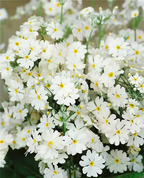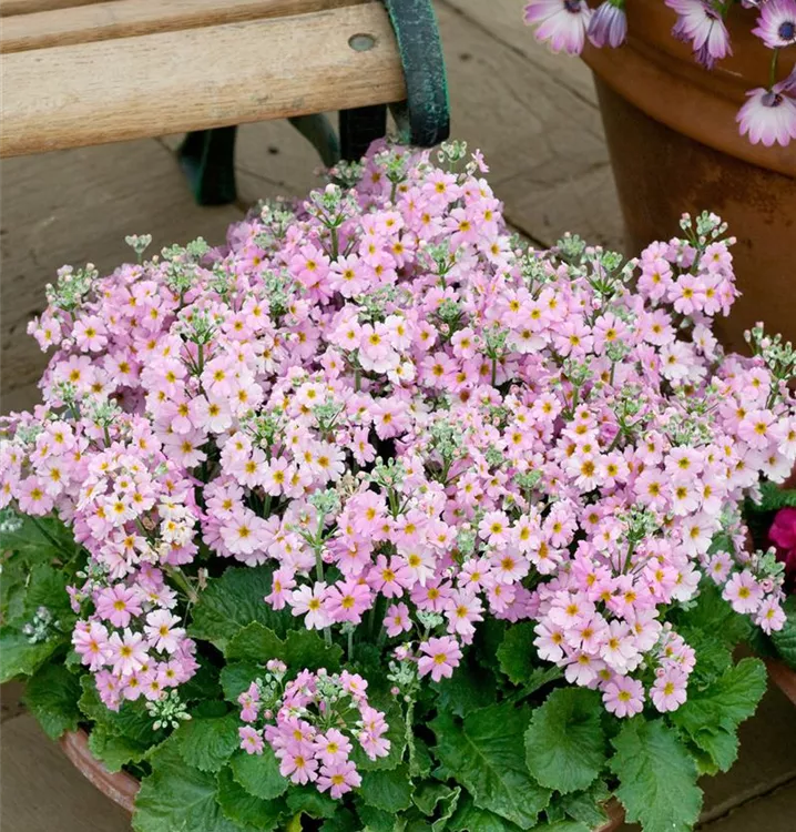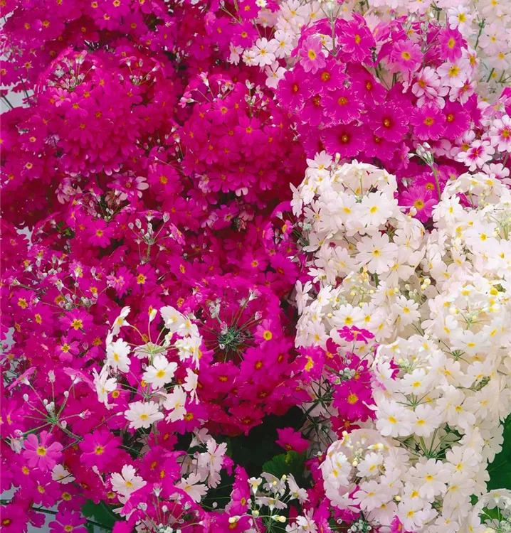 Je nach Sorte, bildet Primula malacoides tellerförmige Blüten in verschiedenen Farben. Diese sind leicht duftend.